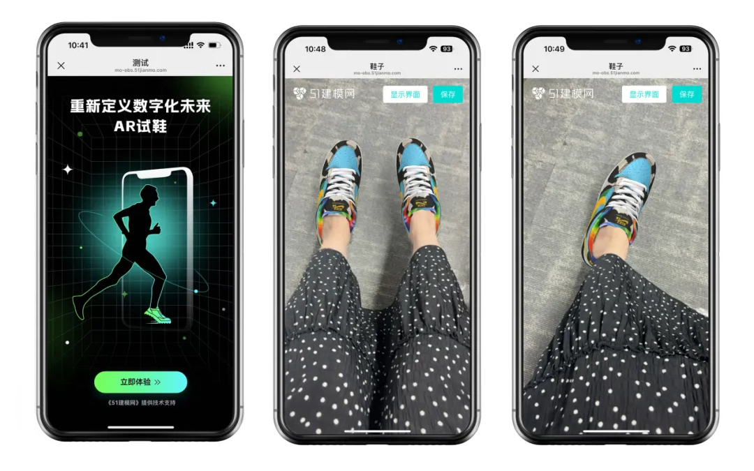凭借AR视觉技术,为商家打破传统线上购鞋的局限,为消费者带来 “所见即所得” 的全新购物体验。基于51建模网自研的3D模型渲染引擎,整个试穿流程顺畅丝滑,仿佛真实地将鞋子穿在脚上。